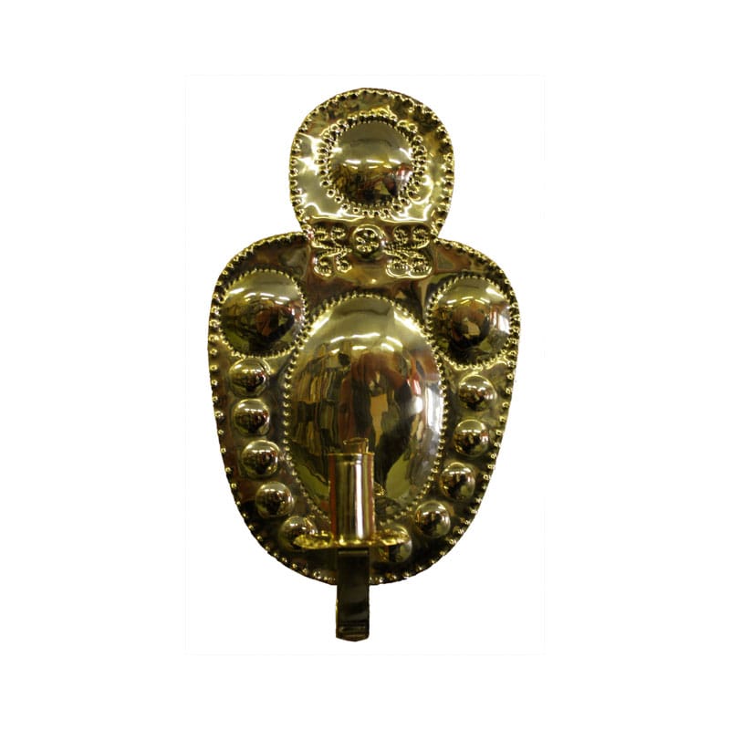 Brass plate wall sconce with one candle holder. After model from the 18th c. Height approx. 32 cm.