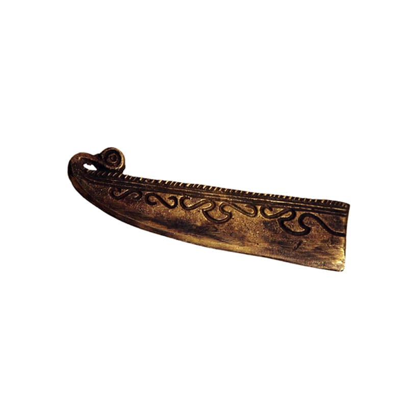 Razor made of brass after model from Grästorp, Skåne, Sweden. Bronze Age. Length of approx. 80 mm.