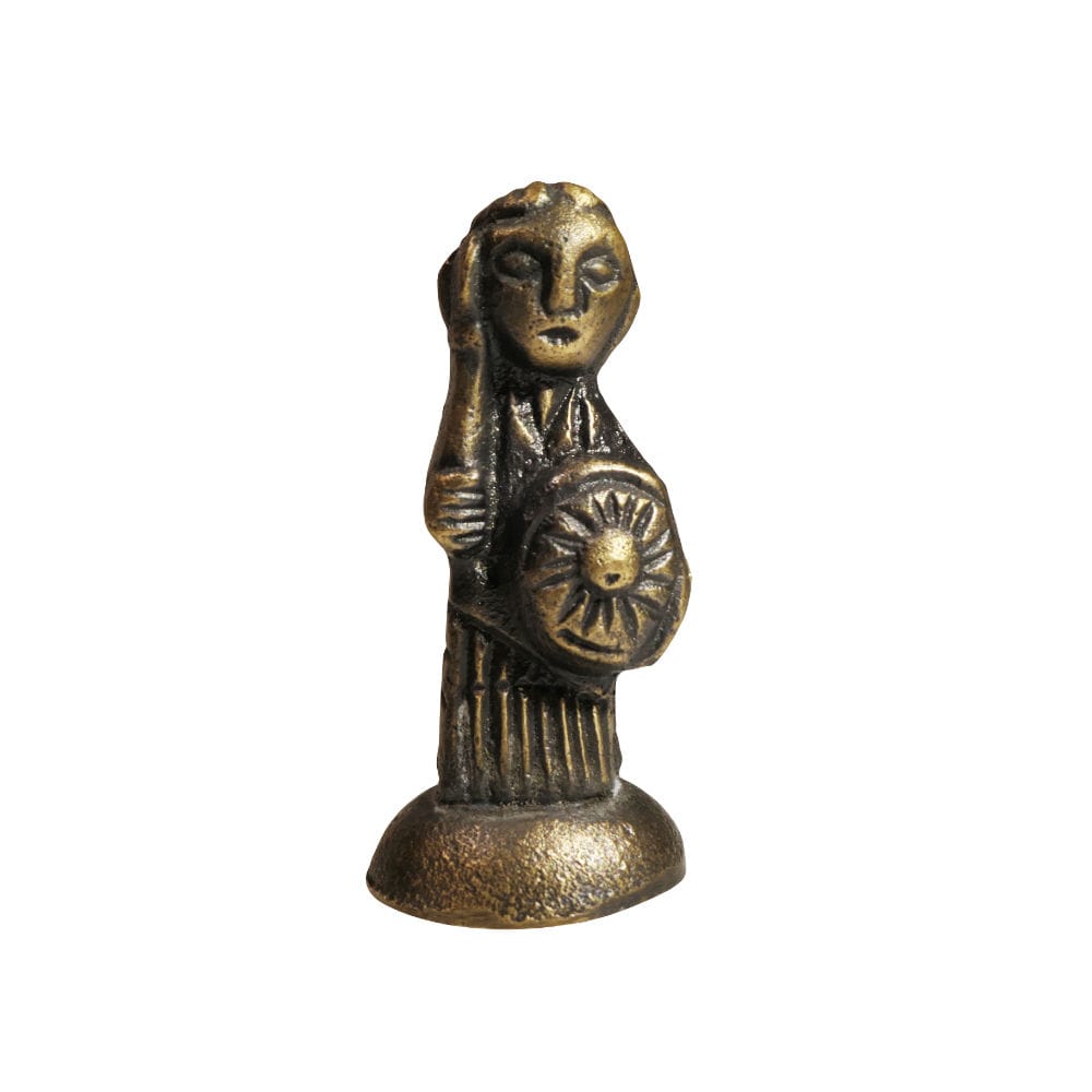 Valkyrie from Hårby, Danmark. After model from Viking Age. Made of patinated brass with a height of approx. 8 cm. Storage bag included.