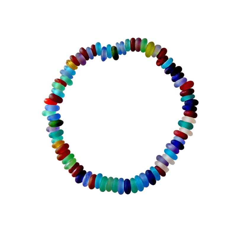 Armband med glaspärlor tillverkat i romersk stil med olika färger på pärlorna. Armbandet har en omkrets på 22 cm.
