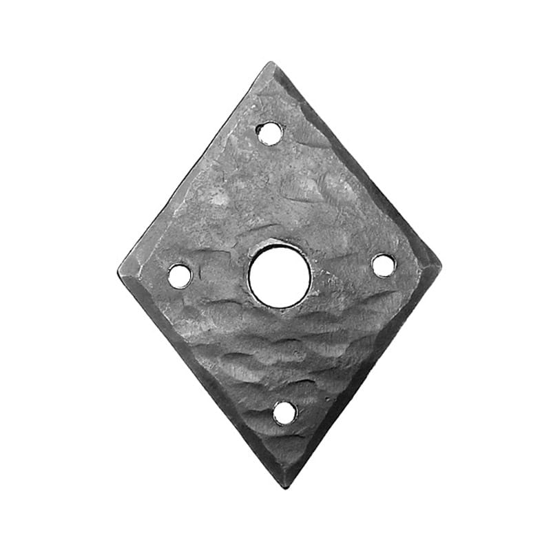 Dörrbläck med fyra kanter och formen som en romb, järn. Dess höjd är ca. 9 cm och diametern på hålet i mitten är ca. 13 mm.