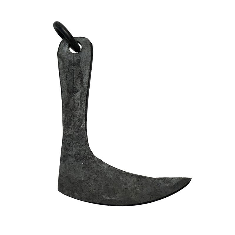 Handsmidd kniv med ring tillverkad av stål efter modell från bronsåldern/vikingatiden. Kniven har en höjd på ungefär 8 cm.