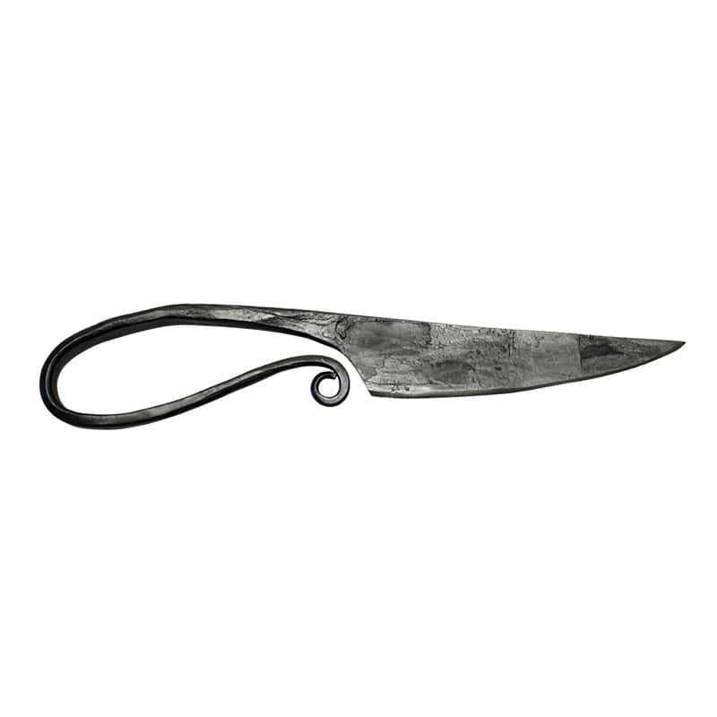 Kvinnokniv tillverkad av järn/smide. Model från vikingatiden/medeltiden. Kniven har en längd på ca 16 cm.
