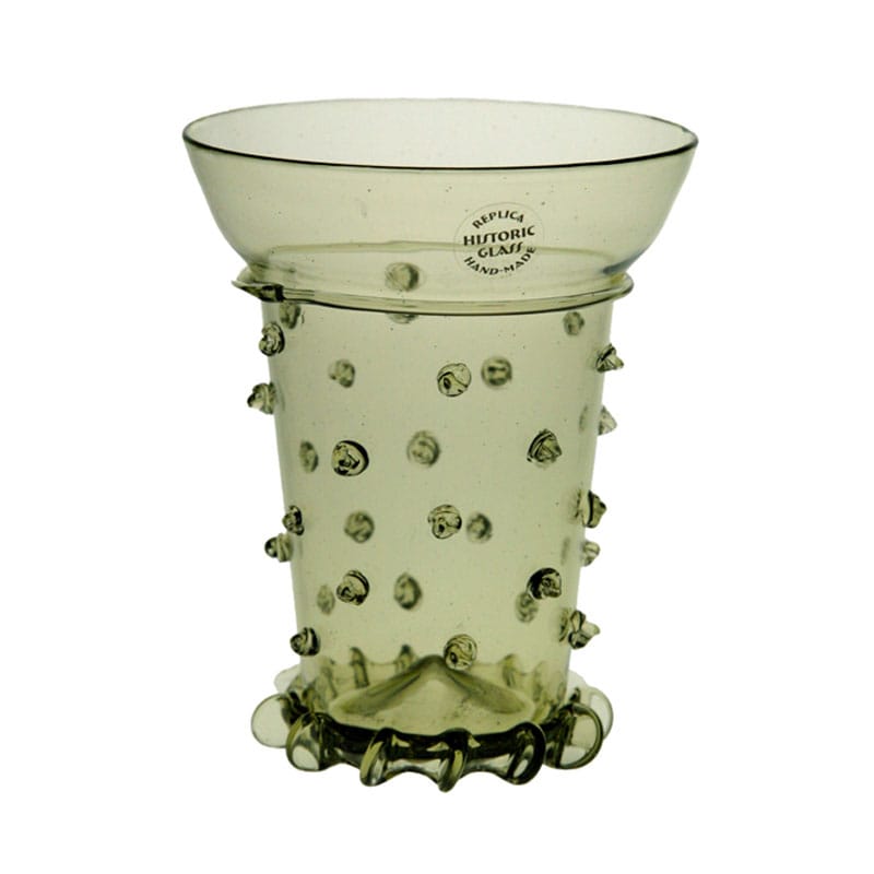 Noppbägare av Schaffhausen-typ. Bägaren är tillverkad efter modell från Schweiz/Tyskland, 1300-talet och har en volym på ca. 20 cl.
