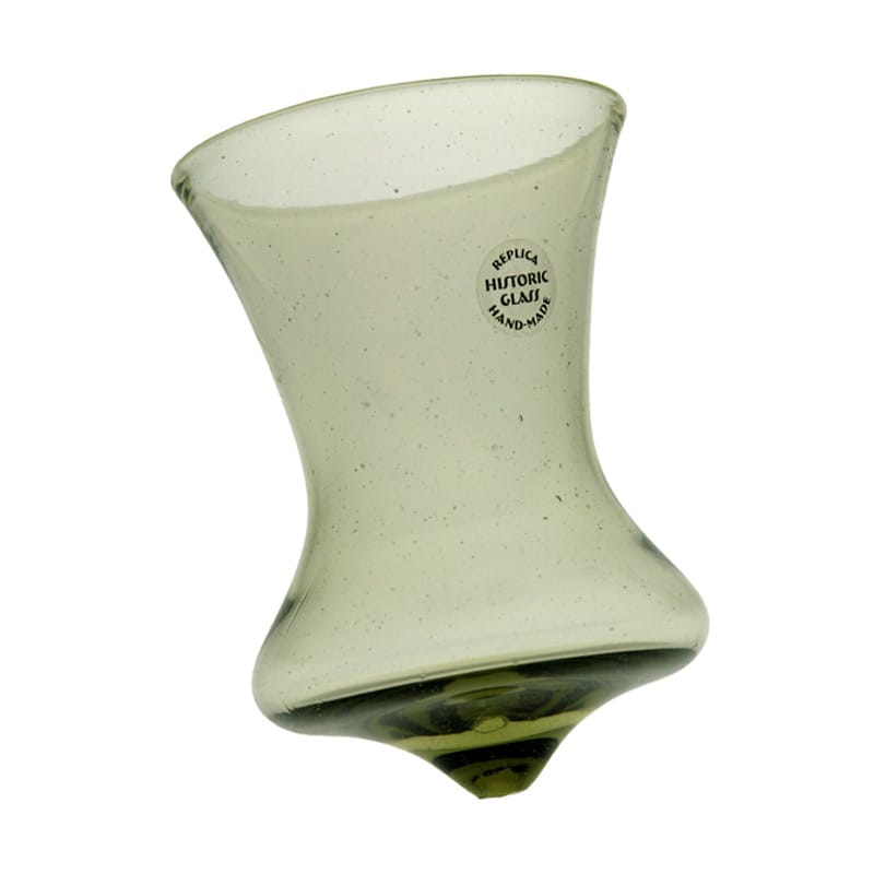 Grön störtbägare tillverkad efter modell från Skandinavien, 600-1000-talet. Glaset har en volym på ca. 15 cl.